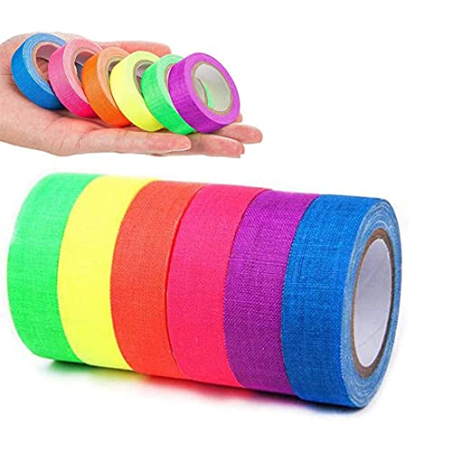 6 pezzi di nastro fluorescente: un rotolo di nastro fluorescente ha 6 colori, colori diversi per le tue esigenze. La fascia stessa non si illumina, risultati in luce UV/.