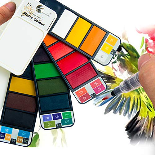 Fuumuui Set di colori ad acquerello Set di pittura ad acquerello solido portatile con matita acquerello perfetta per professionisti e principianti -18 colori