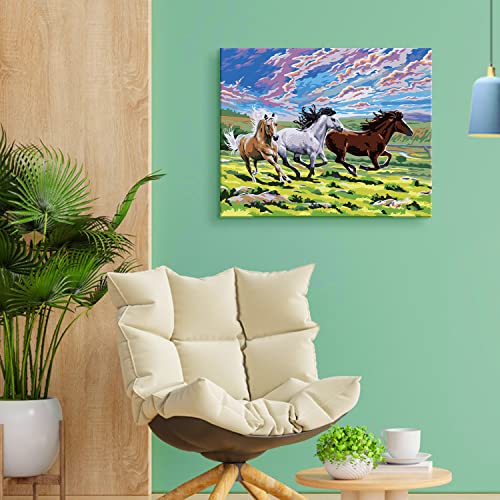 Fuumuui Dipingi con i Numeri Adulti e Bambini Principianti Include Pennelli e Colori Acrilici 40 x 50 cm - Animali, Cavallo nella Prateria