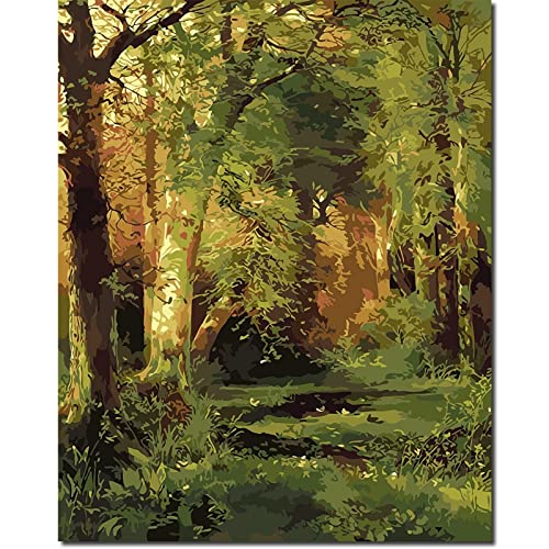 Fuumuui Dipingi con i Numeri Adulti e Bambini Principianti Include Pennelli e Colori Acrilici 40 x 50 cm - Paesaggio, Foresta delle Meraviglie
