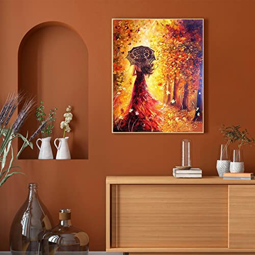 Fuumuui Dipingi con i Numeri Adulti e Bambini Principianti Include Pennelli e Colori Acrilici 40 x 50 cm - Donna, Vestito Rosso Ragazza