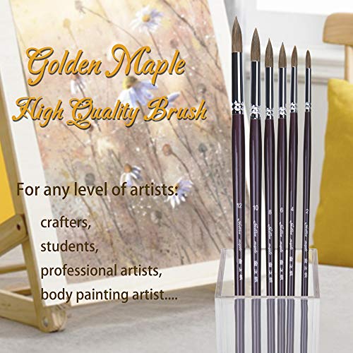 Fuumuui pennelli per acquerelli con zibellino Rosso - 6pz Pennello Tondo a Punta per Artista Professionale per Pittura ad Acquerello Manico Lungo in Legno di brich