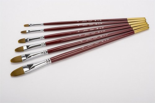 Fuumuui Pennello dell'artista-6Pcs Sable Weasel Filbert Birch manico in legno insieme di spazzola per Acquerello, acrilico e pittura Liner, 6 formati per i bambini nuovi discenti pittori professionali