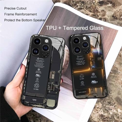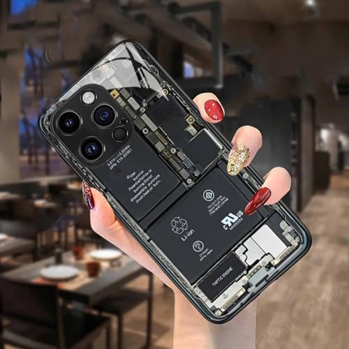 FUUZIO Circuit Board Glass Phone Case for iPhone12/13/14/15series, Circuit Board Anti-Fall Anti-Scratch Shockproof Mobile Phone Case