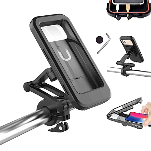 FUUZIO Waterproof Bicycle & Motorcycle Phone Holder, 360° Rotation/Height Adjustable Universal Mobile Magnetic Telephone Holder with Touch-Screen, for Smartphones Below 6.5 inch