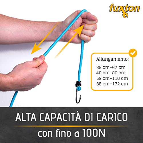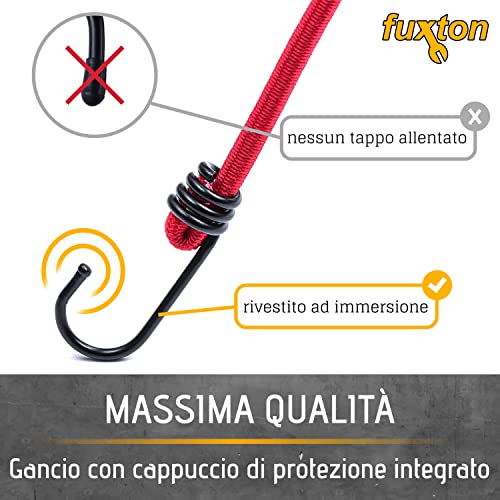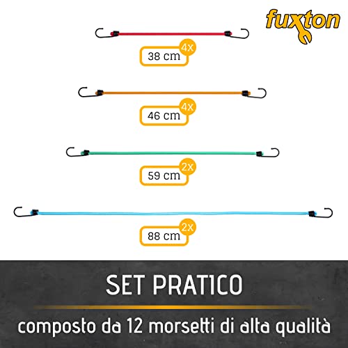 Fuxton Set di 12 cinghie di tensione con ganci, 4 lunghezze e colori (espansione, elastici, elastici, cinghie di tensione) per auto, camper, moto, rimorchi