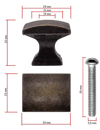Fuxxer.eu, Maniglie antiche per mobili, cassetti, stile rustico, vintage, in bronzo, in ottone, per mobili da cucina, buffet, 29 x 22 mm, set da 2