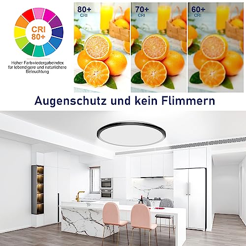 Illuminazione a risparmio energetico: la nostra plafoniera a LED rotonda con LED laterali integrati non richiede lampadine. Con soli 24 W offre una luminosità di 3200 lumen - una sorprendente efficienza LED di 130 Lumen/Watt! È un'ottima alternativa alle tradizionali lampadine a incandescenza da 200 W. Con una di 25000 ore, puoi risparmiare fino al 90% di energia.