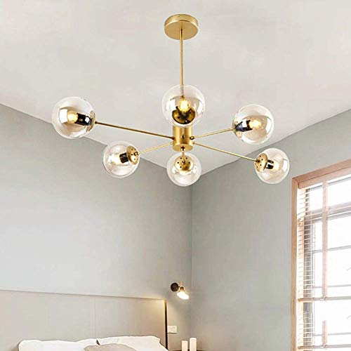 FXBFAG Lampadario Sputnik di metà secolo Lampadario a sospensione con paralume in vetro trasparente soffiato a mano Lampada a sospensione moderna con finitura in ottone Lampada da soffitto a sfera