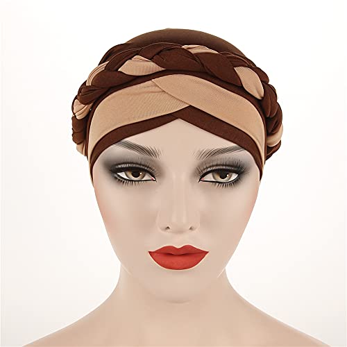 Fxhixiy Hijab Braid - Turbante setoso da donna, per cancro, chemio, berretti, copricapo, Caffè cachi, Taglia unica