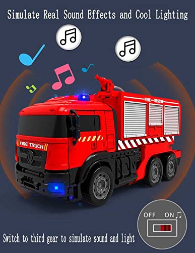 ♦ Completamente funzionale: spruzzatura d'acqua simulata (fino a 16 piedi), vai avanti/indietro, gira a sinistra/destra, suoni di lavoro, luci a LED (luce di alimentazione, luci superiori, fari). Premere il pulsante in alto, spruzzatore automatico della pompa dell'acqua. La sirena, le luci LED lampeggianti e l'allarme di emergenza ti fanno sentire come un eroe che spegne un incendio nella vita reale.
