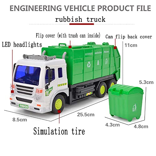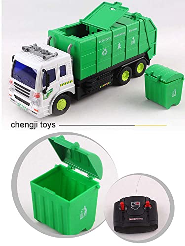 FXQIN Camion della Spazzatura Telecomandato con bidoni, Luci e Suoni, Garbage Truck Giocattolo per Bambini Camion dei Rifiuti RC Veicolo da Cantiere Compleanno Natale Regalo