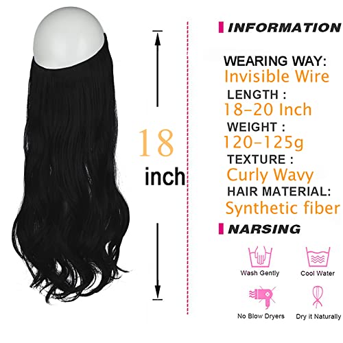 FXTYK Extension per capelli invisibili, con filo segreto, extension per capelli in un unico pezzo, ricci e ondulati, capelli lisci e sintetici, per donne, 45,7 cm, colore: nero scuro