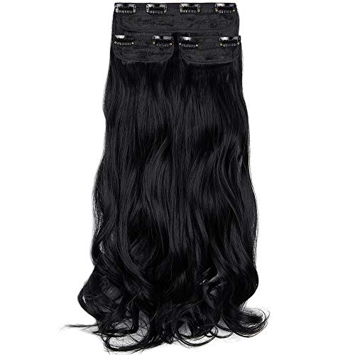 FXTYK Extension per capelli ondulati con clip, ondulati, per donne, 3 pezzi, sintetici, completamente nascosti, nascosti, invisibili, ondulati, 40,5 cm, nero scuro