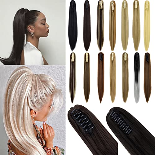 FXTYK Extension lunga per coda di cavallo a coda di cavallo con clip su coda di cavallo extension per capelli mascella/artiglio sintetico dritto ricci parrucchini, marrone medio, 53,3 cm