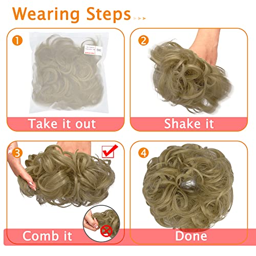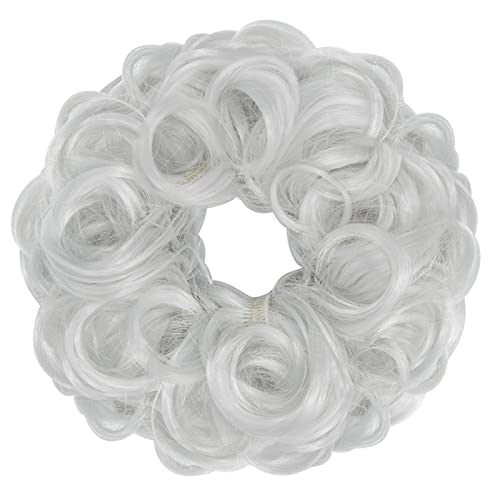 FXTYK Pezzi di capelli disordinati per chignon da donna, capelli ricci ondulati, extension per chignon Updo Chignon per capelli a ciambella, accessori per capelli, grigio argento, 2 pezzi