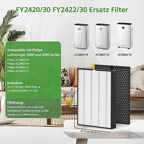 FY2420/30 Filtro di ricambio compatibile con purificatore d'aria Philips AC2882, AC2885, AC2887, A2889, AC2892, AC3829, serie 2000 e 3000, con 1 filtro HEPA e 1 filtro ai carboni attivi