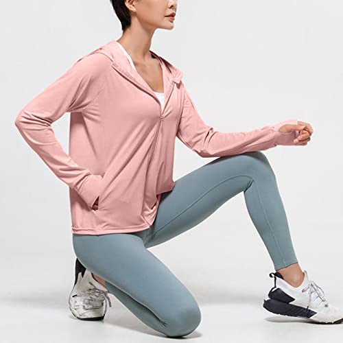 Fybida Giacca da Protezione Solare da Donna, Resistente Ai Raggi UV, Manica Lunga, Rinfrescante, Traspirante, Abbigliamento da Sole per L'Estate Rosa(XL 2XL)