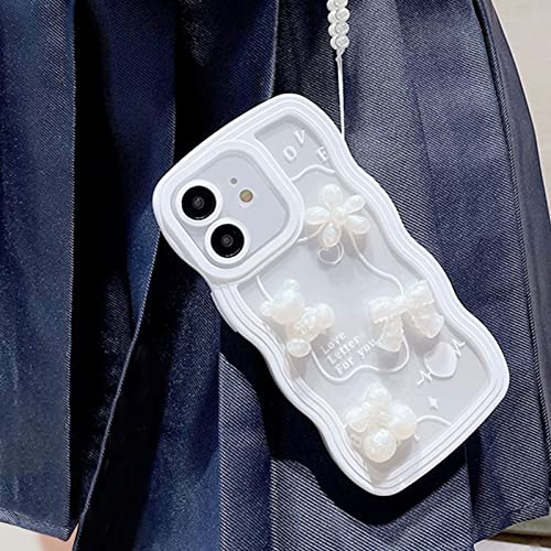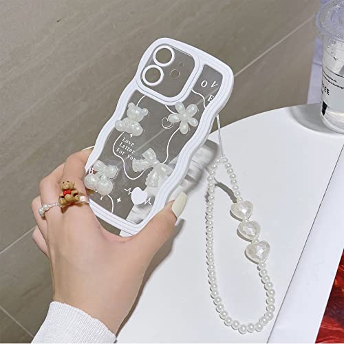 Fycyko Compatibile con iPhone 11 Custodia per Cellulare Custodia di Perle Catena Braccialetto Ragazza Carina Donna Modello Silicone Trasparente Protezione Antiurto Cover iPhone 11-Bianco B
