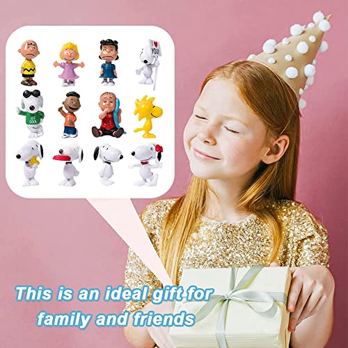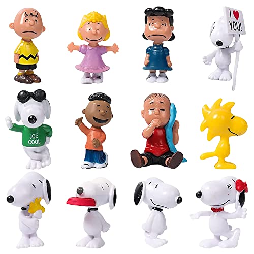 FYDZBSL Snoopy Mini Doll Decorazione Torta Snoopy Mini Figurine Decorazioni per Torte di Compleanno Festa Cake Topper Cartoni Animati Decorazioni per Bambini Compleanno Shower Party 12 Pezzi