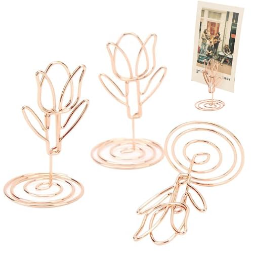 Fyearfly 20 Pezzi Segnaposto, Forma di Tulipano Squisito Segnaposto in Oro Rosa, Clip per Supporto per Promemoria, Supporto per Clip per Foto per Decorazioni da Tavola per Feste di Matrimoni (Oro)