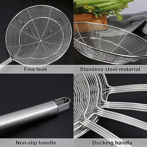 【Materiale di alta qualità】 - Lo skimmer per schermo a ragno è realizzato in acciaio inossidabile 201 di alta qualità, i doppi fili tondi sono ispessiti e rinforzati, resistenti agli acidi, agli alcali, alle alte temperature, non facili da arrugginire e facili da pulire. Materiale per uso alimentare, sicuro e protetto.