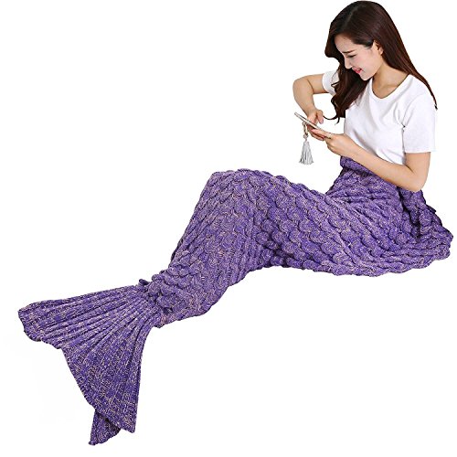 FYHAP - Coperta a forma di coda di sirena, lavorata a maglia a mano, per bambini e adulti, Poliestere, Purple, Adulti
