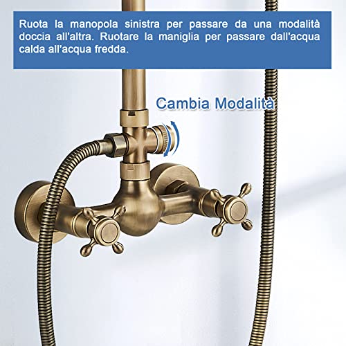 Fyheast Colonna Doccia con Miscelatore, Miscelatore Doccia In Ottone Vintage Con Doccetta E Soffione 80-120 Cm Regolabile In Altezza