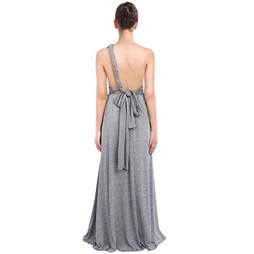 FYMNSI Donne Lunga Vestito da Cocktail da Sera Elegante Damigella d'Onore Collo V Senza Maniche Vestito Multi-Usura Trasversale Maxi Abito Matrimonio Banchetto Cerimonia Grigio XS