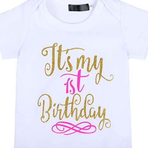 FYMNSI - Body a maniche corte con gonna a tutù e fascia per capelli, per primo compleanno, abito da sera, cerimonia, 3 pezzi Rose Vif 1er Anniversaire 1 Anno