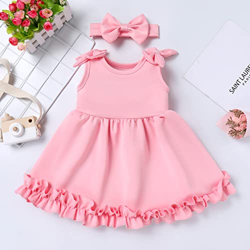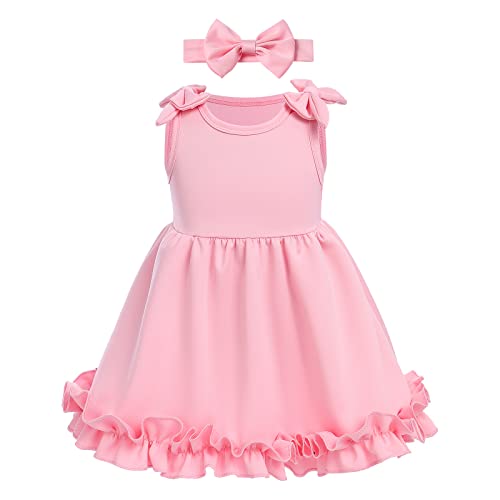 Vestito da festa per bambine: adorabili abiti estivi per bambini, tinta unita, senza maniche, per il tempo libero, per damigelle d'onore, tutù, per il primo / secondo / terzo compleanno, per battesimo, per bambini, per Pasqua, per bambini. Viene fornito con una fascia per capelli per completare il look complessivo. Rendi la tua piccola principessa più luminosa e vivace. Bel regalo per la vostra bella principessa