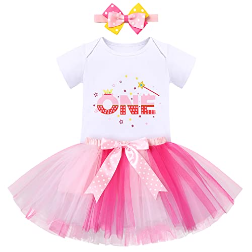 FYMNSI Vestito per il primo compleanno, tutù, tutù, in cotone, a maniche corte, da principessa, tutù, gonna in tulle, paillette, set per 1 anno, regalo di compleanno, Rose - One, 12 mesi