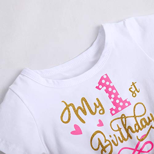 FYMNSI - Vestito da principessa, a maniche corte, per primo o secondo compleanno, da sera, in tulle, età: 1-2 anni Rosa vivace il mio 1° compleanno 1 Anno