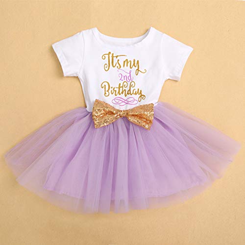 FYMNSI - Vestito da principessa, a maniche corte, per primo o secondo compleanno, da sera, in tulle, età: 1-2 anni Viola 2° compleanno (solo vestito) 2 Anni