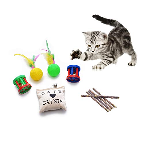 Materiali di alta qualità: ogni giocattolo è realizzato con materiali di alta qualità, come legno naturale, erba gatta, sisal, materiali elastici e piume. Sono atossici e insapori, non danneggiano il gatto e possono essere usati in modo sicuro per i gatti.