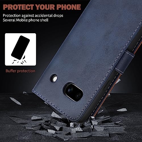 Fyriswho Cover Compatibile con Google Pixel 7A,Custodia in pelle Premium PU Leather Portafoglio,Flip Porta Carte Funzione Supporto per Google Pixel 7A - Blu & Marrone