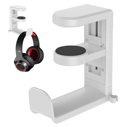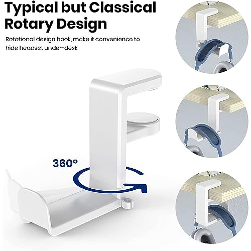 FYting Porta Cuffie,Supporto Cuffie,Porta Cuffie Gaming,Accessori Scrivania Regolabile, Supporto per Cuffie Girevole a 360° con Gestione Cavi, Gancio per Cuffie da Scrivania da Gioco(Bianco)
