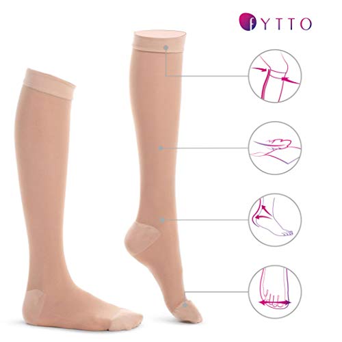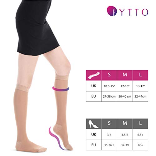 Fytto 1007, calze a compressione da donna, velate 15-20 mm/hg, gambaletti leggeri e professionali per affari e viaggi