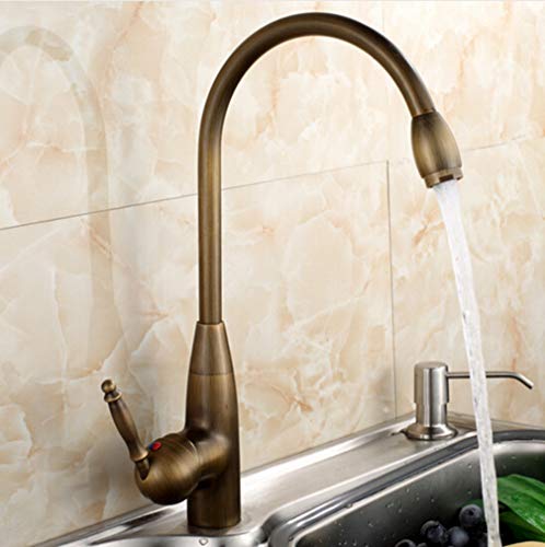 FZHLR In Ottone Bronzo Antico Finito Singolo Cucina Lavello Rubinetto Caldo E Freddo