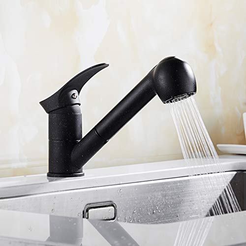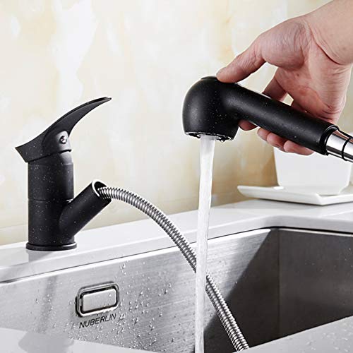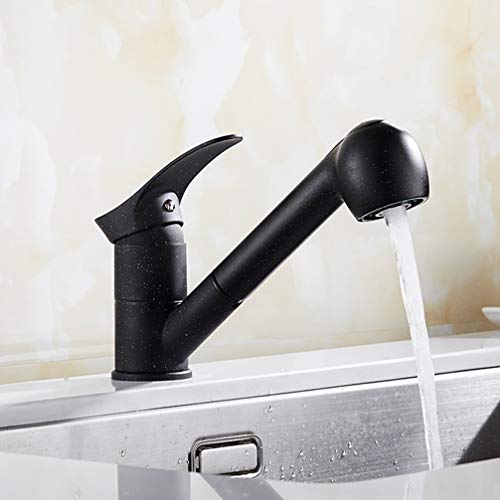 FZHLR Ottone Rubinetto Della Cucina Nero/Bianco Verniciatura Pull Out Deck Singola Maniglia Montata Da Cucina Acqua Del Rubinetto, Il Nero Con Il Puntino