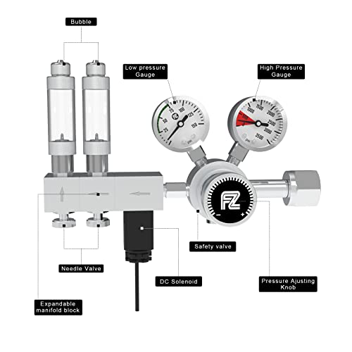 FZONE Regolatore CO2 a Doppio Stadio Acquario Serie PRO Pressione di Uscita Regolabile con Solenoide DC e Valvola a Spillo Alta Precisione Integrata e Contabolle (Dual Stage-1)