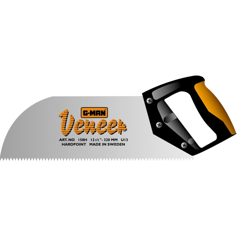 Art. 158H impugnatura chiusa, lama in acciaio speciale temperato. Lama a punta dura con parte anteriore curva. Dentatura temperata universale. 13 denti/pollice. Idoneo per segare pannelli compensato, impiallaciatura, ecc. Lunghezza lama 320 mm.