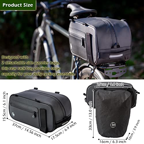GRANDE Capacità: 8,5 L + 14 L. Dimensioni della borsa portabici: 37 x 15,5 x 17,5 cm. 22,9 cm), borsa laterale Dimensioni: 33 x (16-25) x 10 cm. Questa borsa da ciclismo è abbastanza spaziosa per riporre i tuoi oggetti essenziali per il ciclismo come telefono, portafoglio, libri, bottiglie d'acqua, strumenti di, cibo e altre necessità quotidiane.