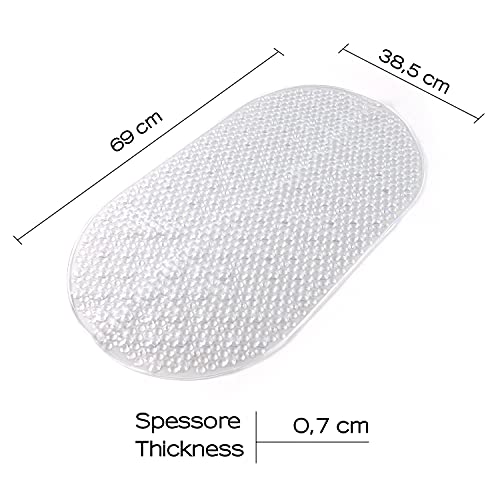 Gedy G-Solid Antiscivolo Vasca con Ventose, Misure: 39x69, Tappetino Bagno in Resina, Finitura Trasparente, Design R&S, 100% Made in Italy, Tappeto Lavabile in Lavatrice, 2 Anni Garanzia, Unica