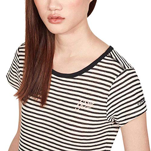 G-STAR RAW Graphic 26 Slim Round Neck T-Shirt, Multicolore (Milk/Dk Black Stripe A681), 40 (Taglia Produttore: X-Small) Donna