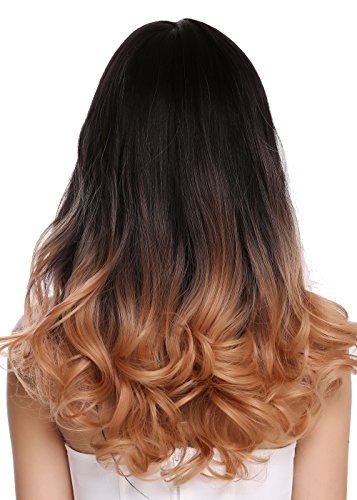 WIG ME UP - G1733-1344R4 Parrucca donna Lunga Frangetta Leggeri ricci Balayage Castano scuro Biondo rossiccio