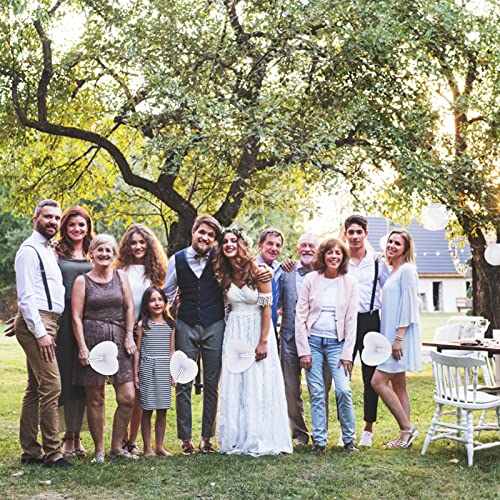 【Materiale】Il ventaglio di carta è realizzato con carta di altissima qualità, le maniglie sono realizzate in plastica delicata. I ventagli bianchi sono ben fatti e sembrano molto chic.