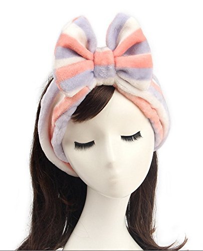 G2PLUS Coralli in tessuto non tessuto fascia Bowknot fascia per capelli cerchietto per capelli elastico capelli fiocco per Make Up, Rosa Streifen