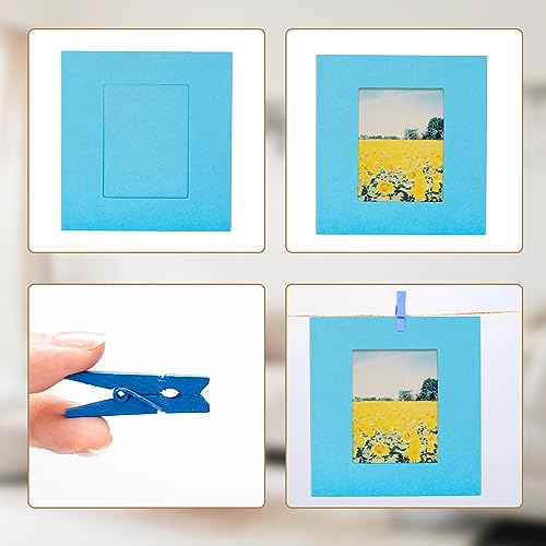 G2PLUS 20 mini Cornice di Carta per Foto,9*9.5CM Cornici di Cartone con 20 mini mollette di legno+Corda per Decoro Parete di Casa, Scuola, Ufficio, Festa,Regali di Inaugurazione Della Casa(Colorato)