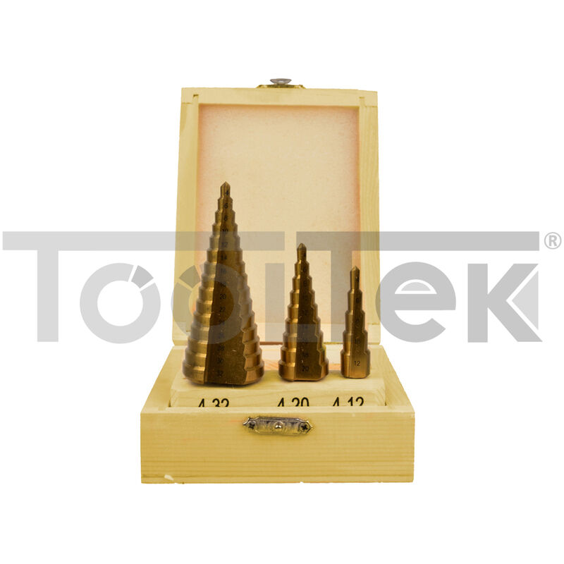 Set di frese allargaforo per metallo 3 pezzi .Ideali per forare lamine di metallo sottili senza deformarle.Per tutti i tipi di metallo, plastica industriale e lamine fino a 2 mm di spessore.Gambo e profilo esagonali per evitare slittamenti nel mandrino, di spessore 6 mm, montabiole su qualsiasi trapano ed avvitatore.MISURE: 1 x 4-12 mm 1 x 4-20 mm 1 x 4-32 mm. Prodotto di qualità.